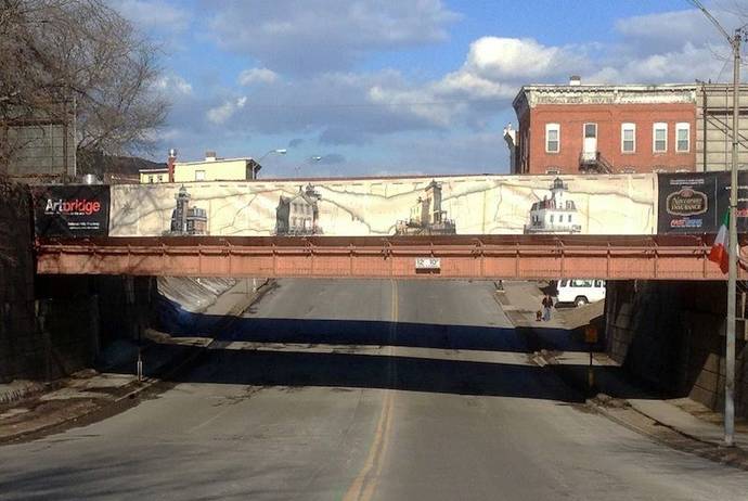 The initiative is promoted by ArtBridge, a non-profit organization of public art from New York which uses scaffoldings and enclosures present within the urban fabric as white canvas on which artists can exhibit their works.
