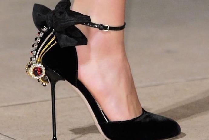 Who wouldn’t want these Miu Miu shoes on their feet for holiday parties? Whether you decide to wear them with dark or glittery tights or barelegged, they will bring a touch of glamour to every look, and that’s for sure. Not only do they look great because of the peculiarity of the heel and the exquisite proportions - but the combination of velvet and the jewelry on the back make them the shoes of every lady’s dream...You will not be disappointed.